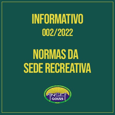 Como é de conhecimento de todos, a Sede Recreativa dos Servidores da Polícia Federal em Goiás (Clube da Ansef Goiás) possui regras pelo Regulamento Geral da Sede Recreativa que fica disponibilizado para acesso na Sede Administrativa da Entidade.